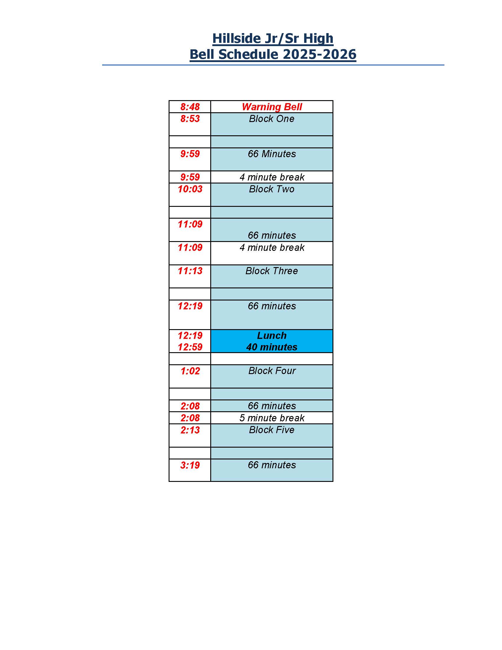 25 26 Bell Schedule